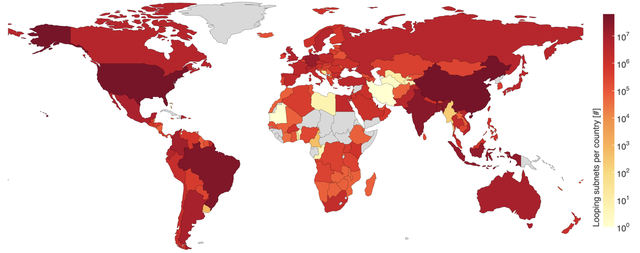 We observed routing loops triggered by 419M /64 subnets. These subnets affect 7.1M IPv6 router addresses, distributed in over 163 economies.