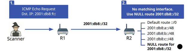These configurations instruct the router to drop traffic to 2001:db8::/32 if no more specific route is available.